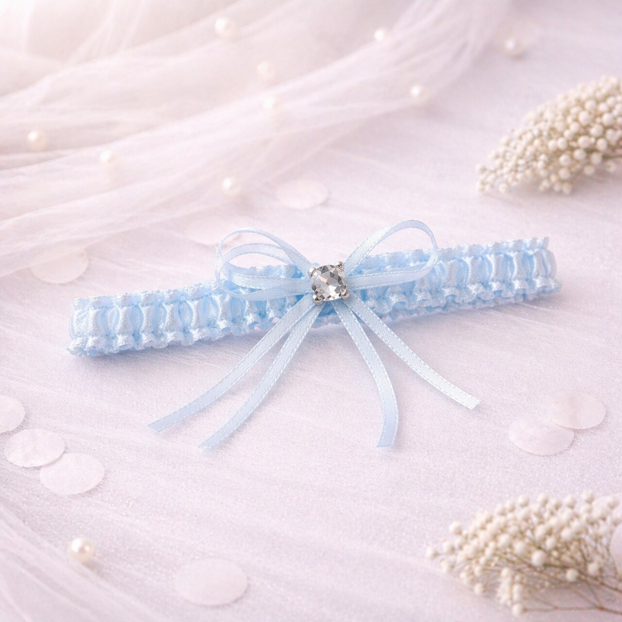 A blue garter is a classic part of the “something blue” tradition. Blue symbolizes fidelity, peace, and happiness, while also being a subtle and elegant addition to the bride’s styling.