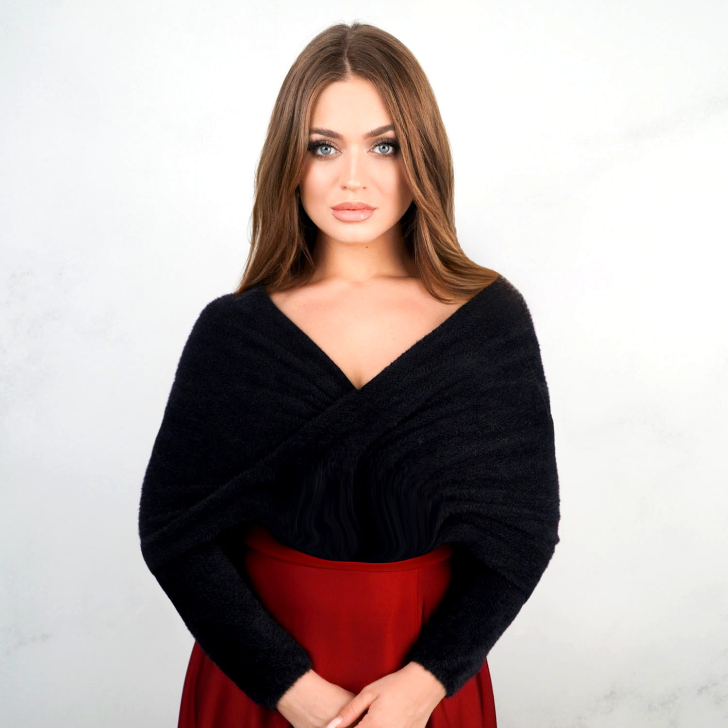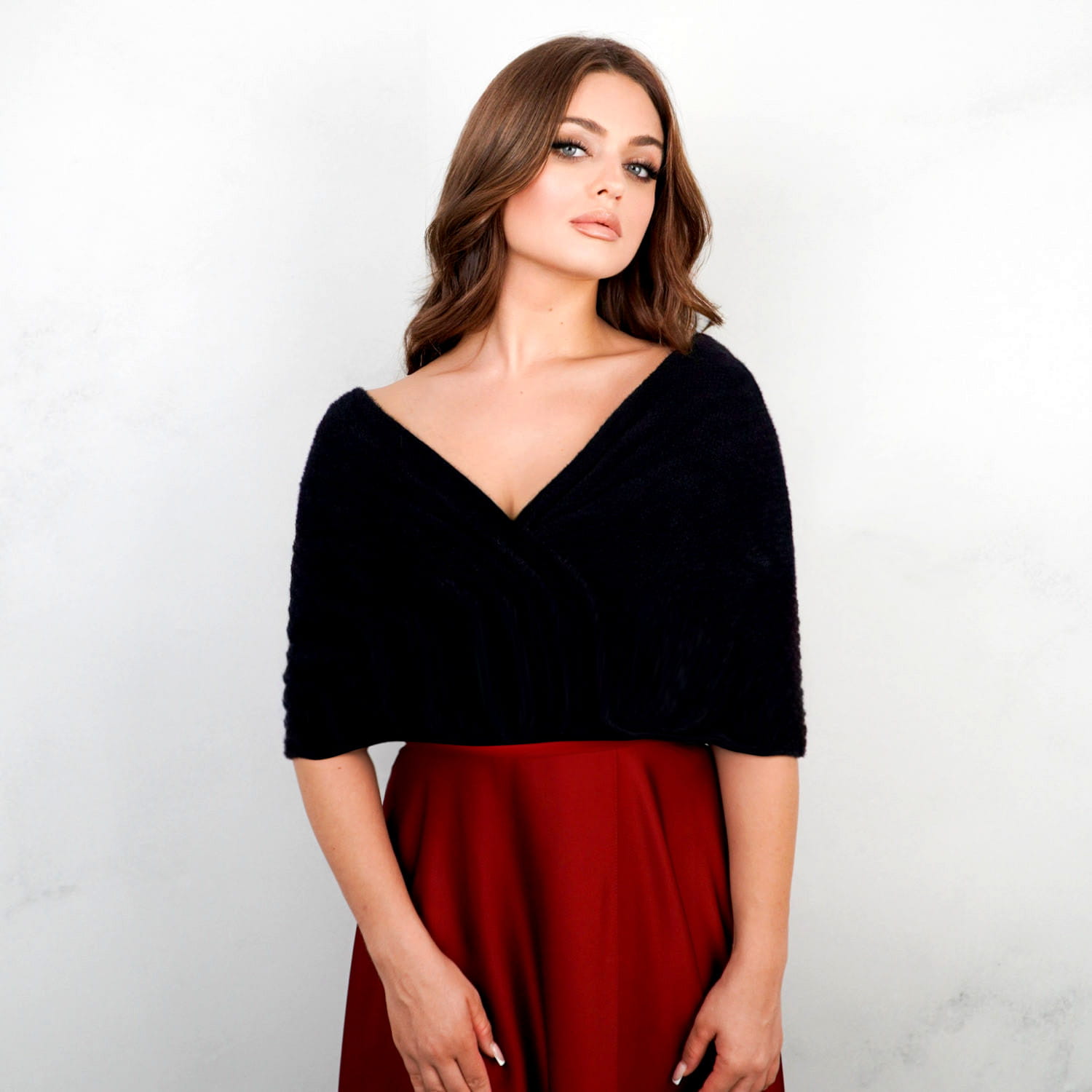 - Ideal black bridal stole for winter, autumn, or spring – warm, soft, and elegant