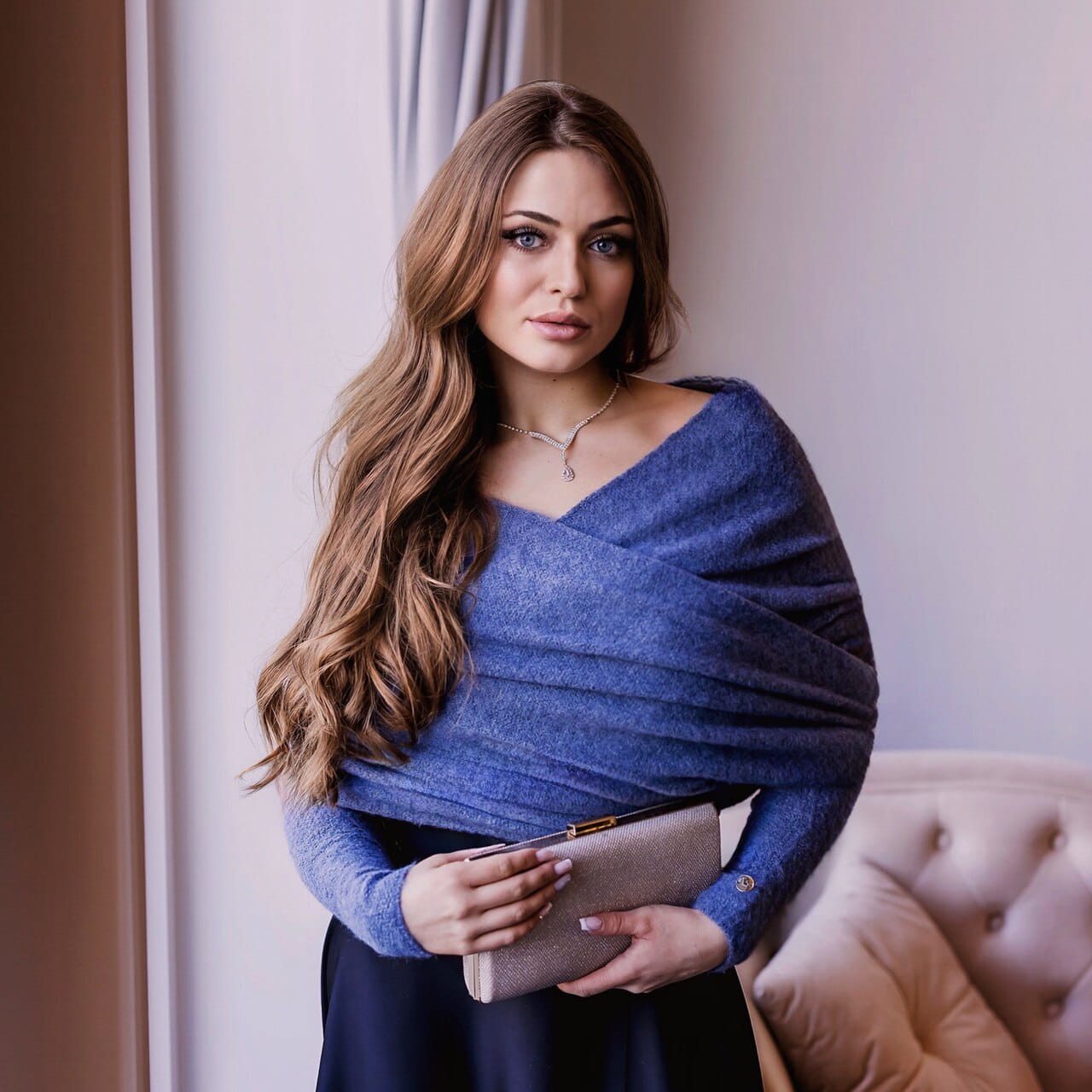 The bridal stole is made from high-quality Italian yarn, characterized not only by its exceptional softness but also by its beautiful fluffy effect. A bridal stole is a perfect accessory for the bride, allowing her to feel elegant and stylish. It is highly versatile - it can be worn in many ways. It is non-allergenic and non-irritating, making it excellent for cooler days. The long sleeves make it warm, comfortable, and yet very feminine. The stole is a type of delicate shawl with sleeves, typically worn over the shoulders. It is ideal for the autumn-winter period.