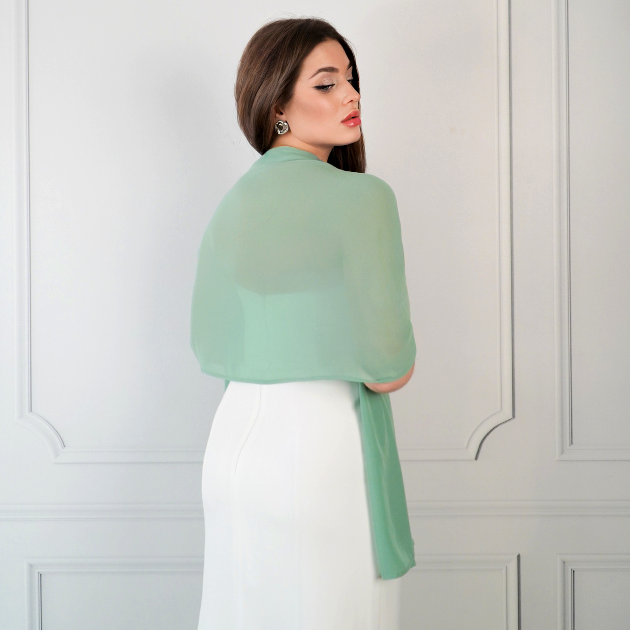 CHLOE – Szal szyfonowy ślubny elegancki dodatek do sukni ślubnej w kolorze szałwiowym / oliwkowym