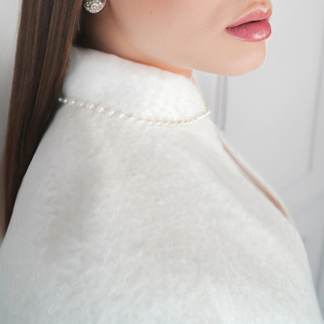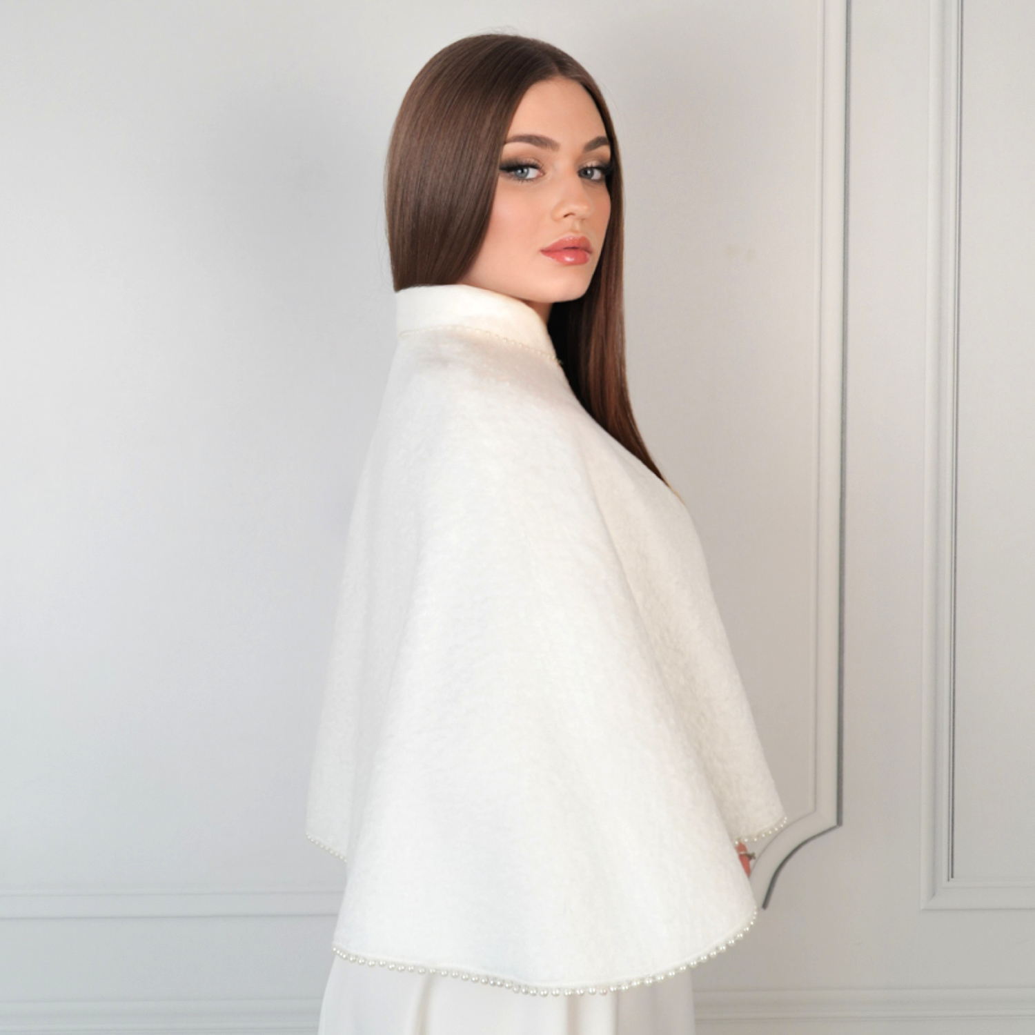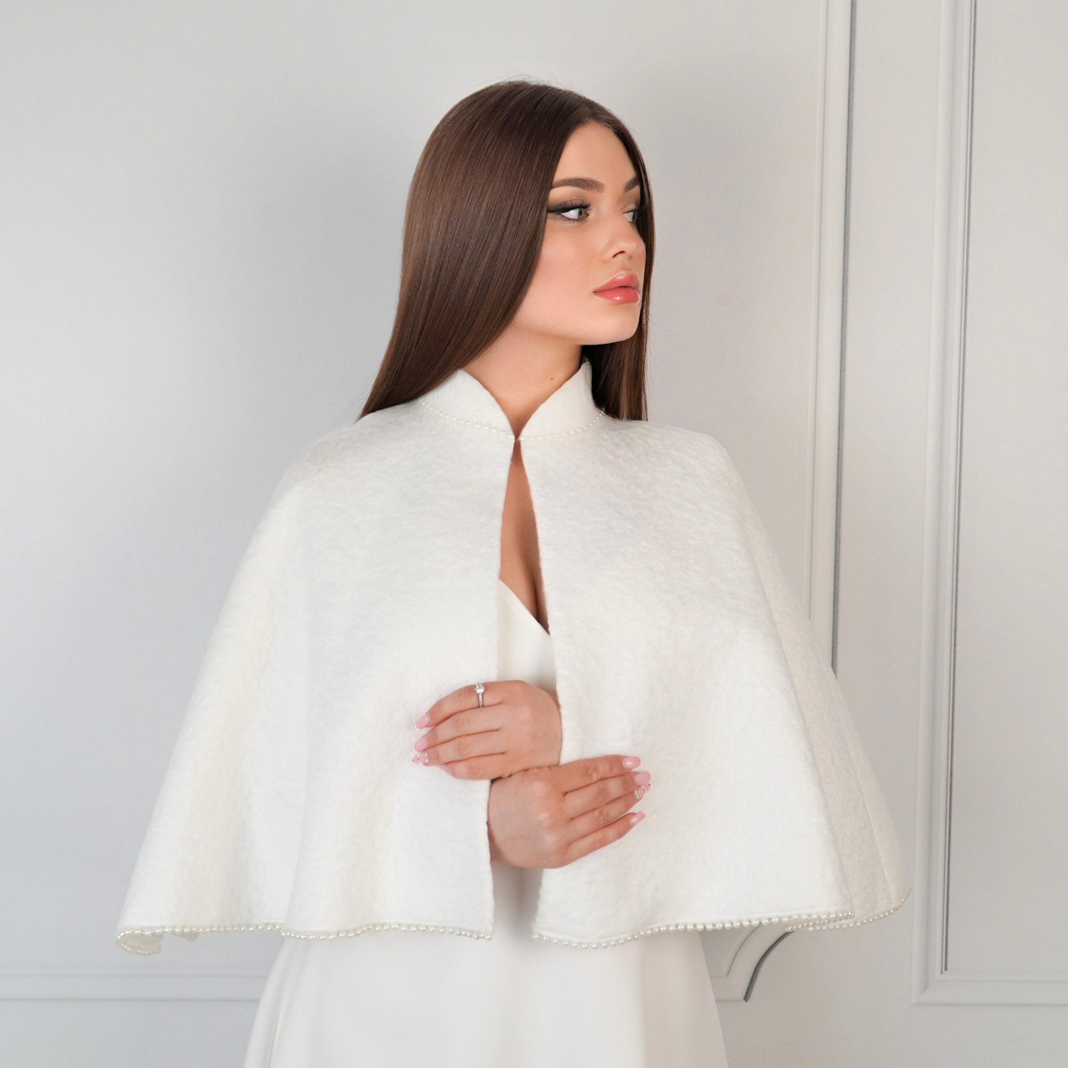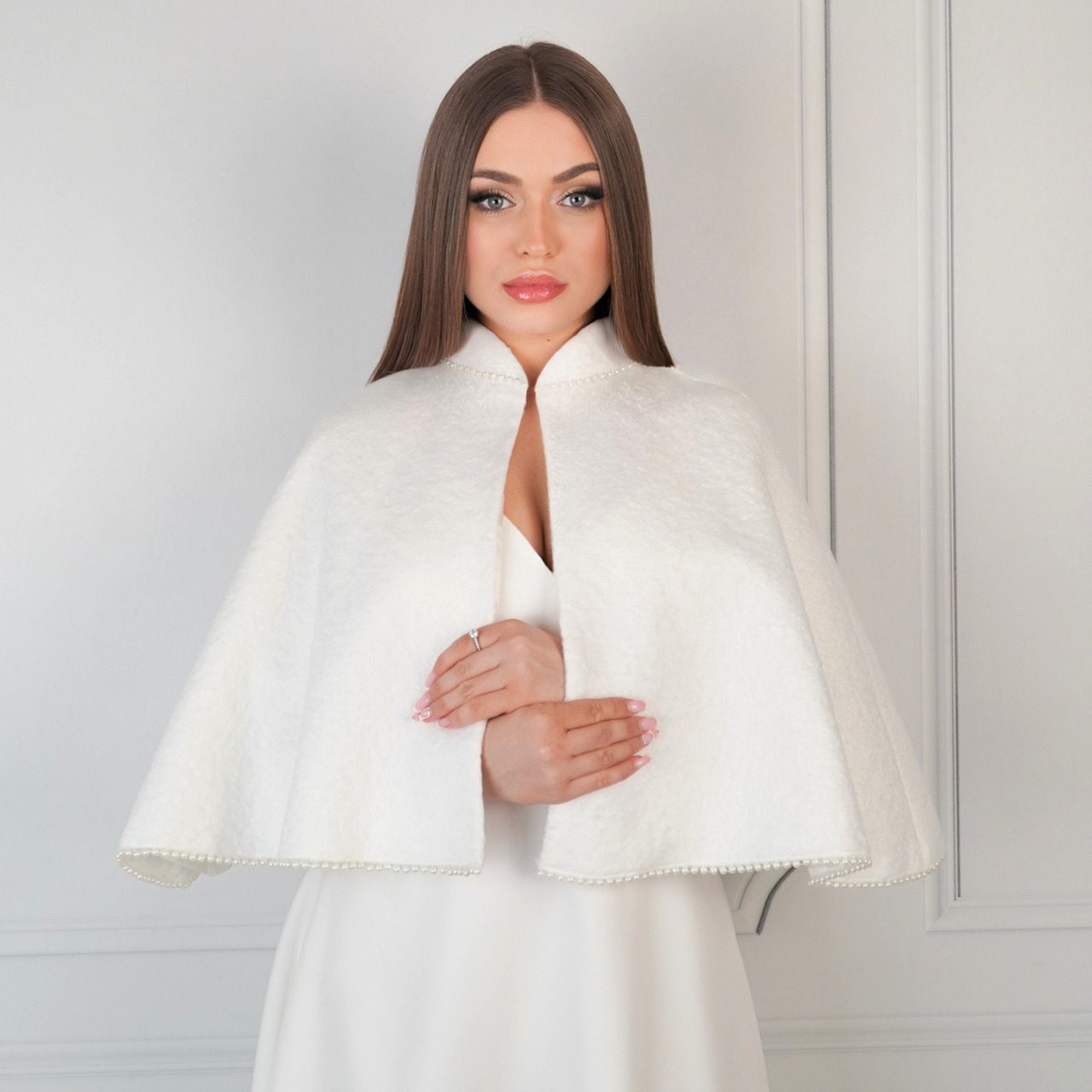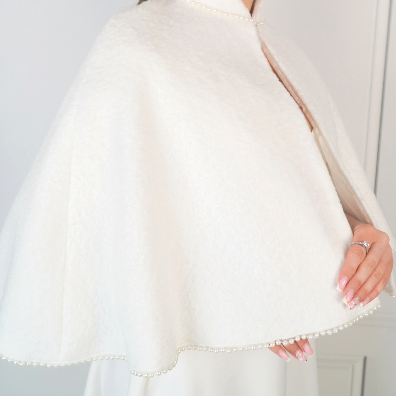 - Pelerynka ślubna obszyta perełkami