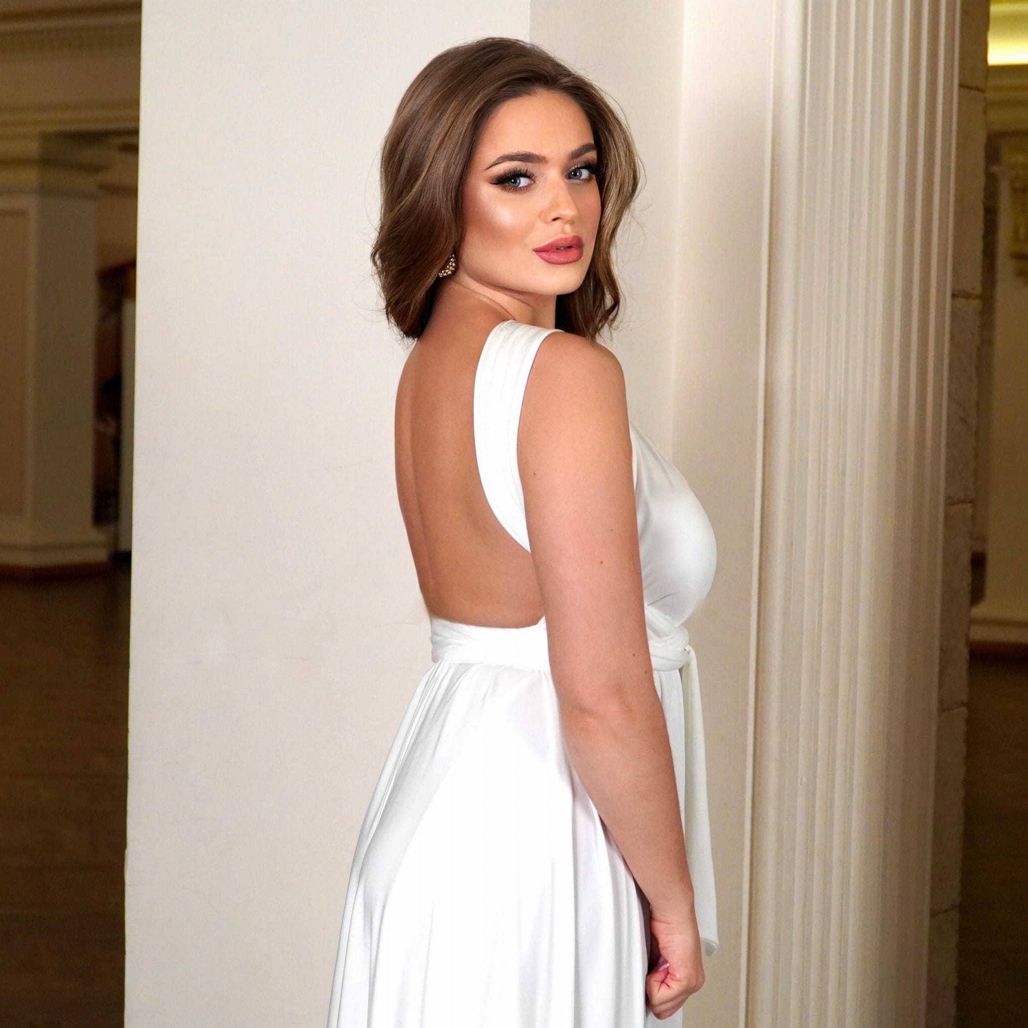 Model LISA wyróżnia się efektownym rozcięciem na nodze, które dodaje lekkości i kobiecej zmysłowości, zachowując jednocześnie elegancki i uroczysty charakter. Dzięki wiązaniu typu multiway sukienkę można stylizować na wiele sposobów, dopasowując dekolt do własnych preferencji. To sprawia, że jest to niezwykle uniwersalna biała sukienka wiązana na wiele sposobów na wesele i poprawiny.
