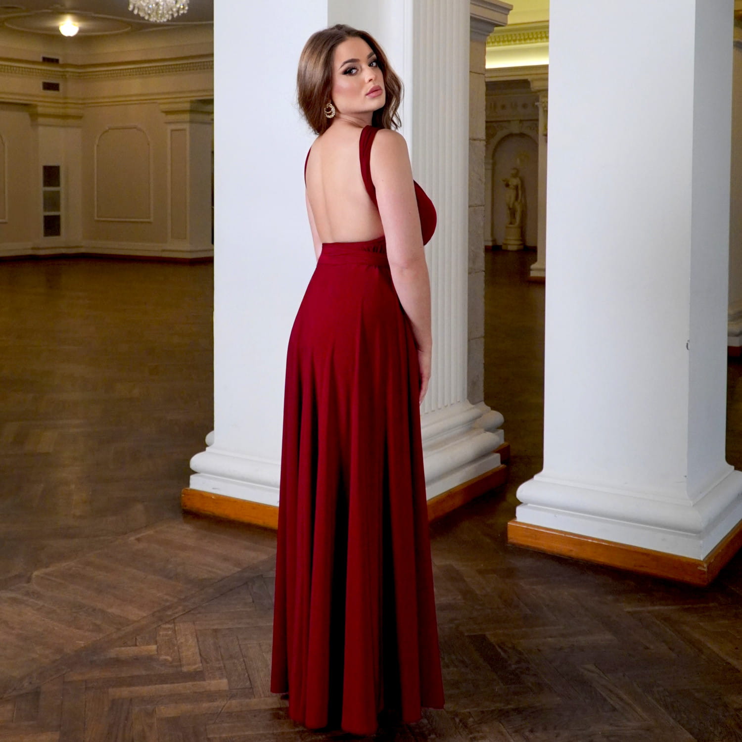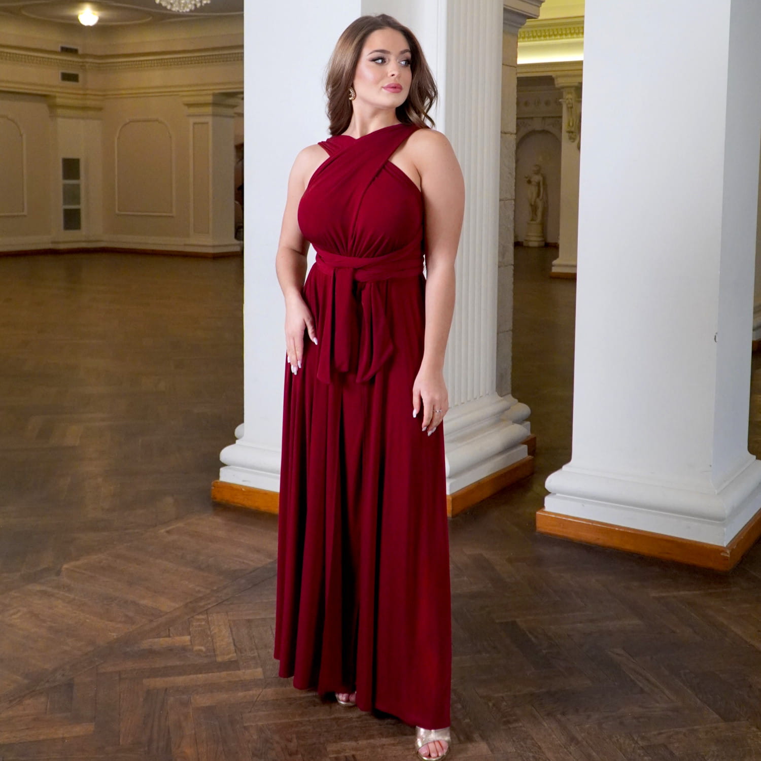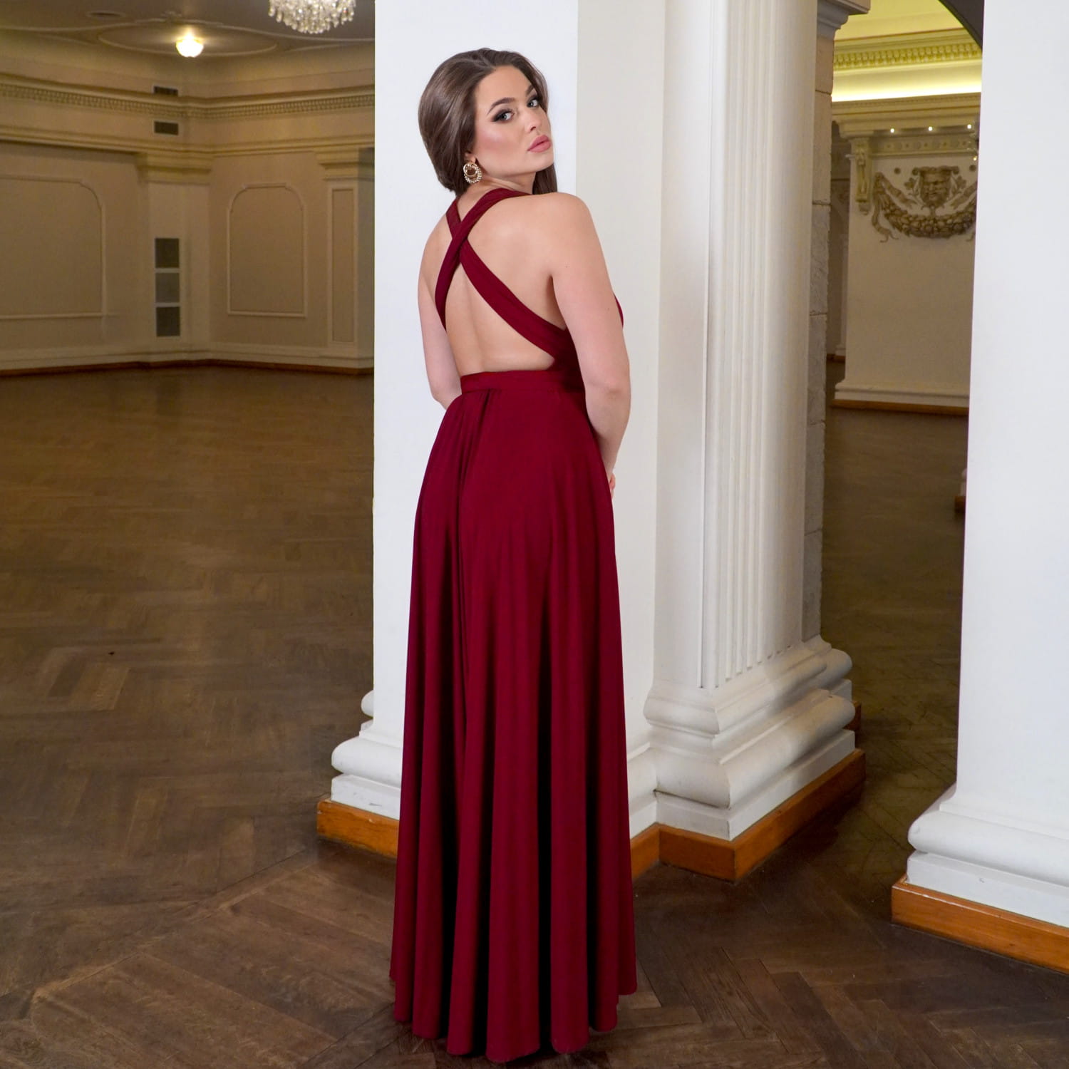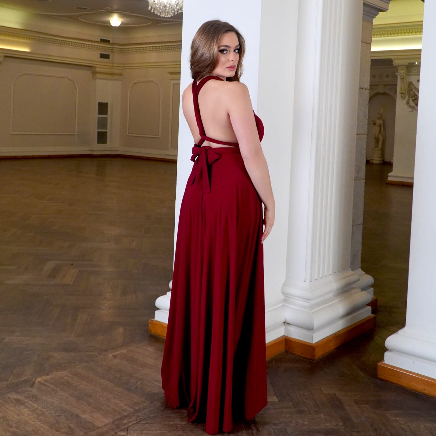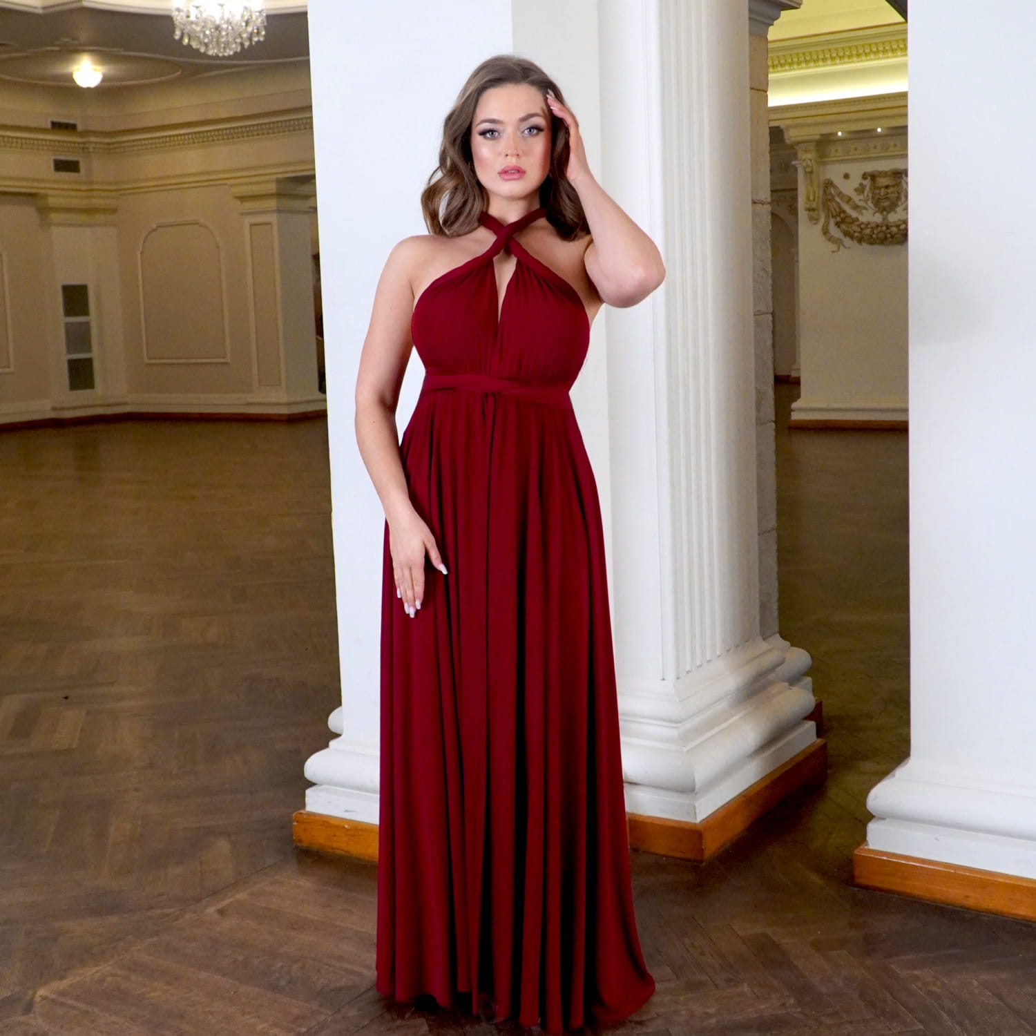 Elegancka sukienka wieczorowa długa bordo LISA to idealny wybór na wesele, studniówkę, bal, galę i wyjątkowe okazje. Uszyta z miękkiej, oddychającej wiskozy, pięknie układa się na sylwetce i podkreśla kobiece kształty. Wysokie rozcięcie na nodze dodaje zmysłowości, a wiązanie na wiele sposobów (multiway) pozwala dopasować dekolt i styl do każdego typu figury. To bordowa sukienka maxi, która łączy komfort, elegancję i nowoczesny design. Świetnie prezentuje się w tańcu, wysmukla sylwetkę i gwarantuje efekt „wow” na każdym evencie. Jeśli szukasz sukienki wieczorowej w kolorze bordo z wiskozy, która będzie zarówno stylowa, jak i uniwersalna – LISA to strzał w dziesiątkę.