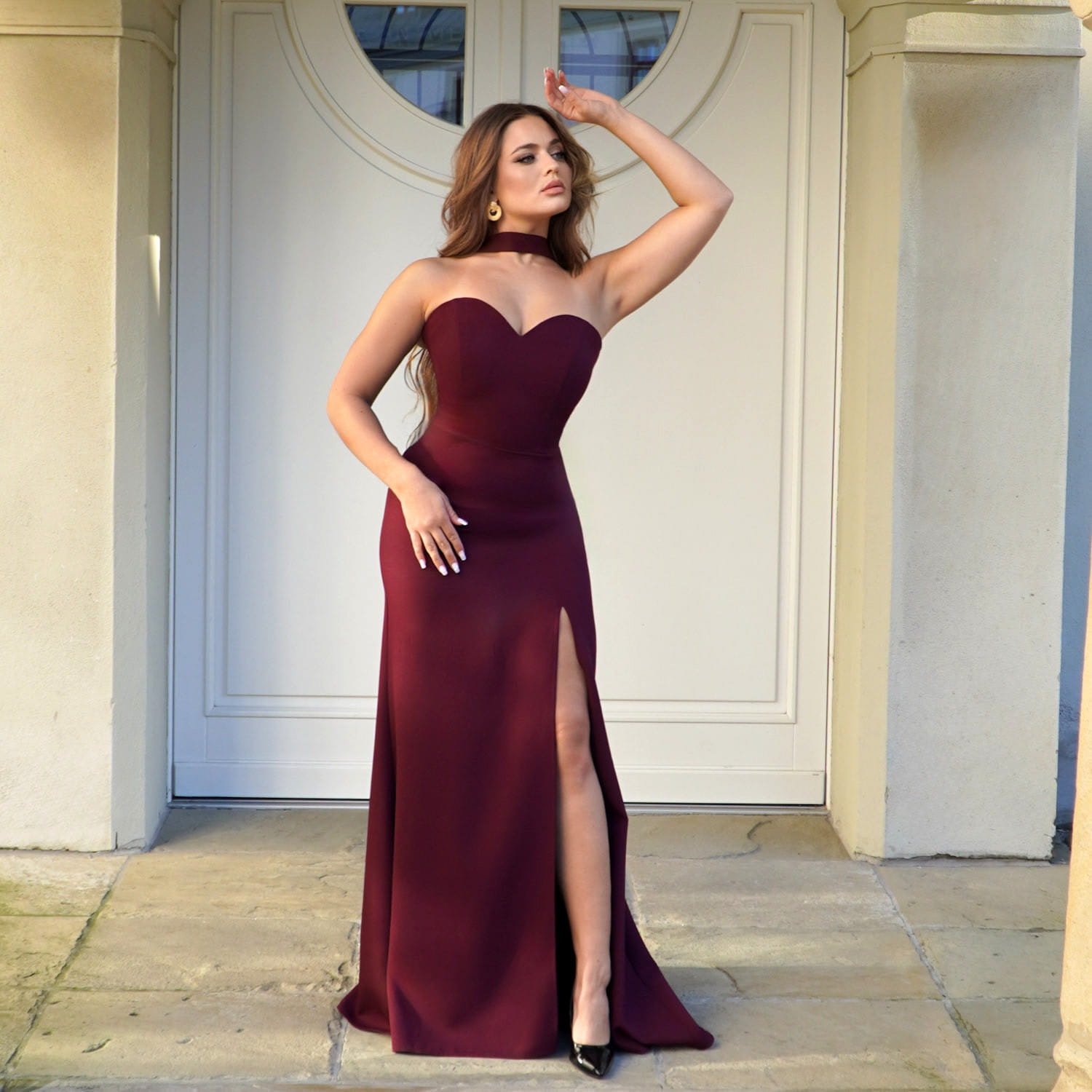 Postaw na elegancję w najczystszej formie. MARGOT to długa, dopasowana suknia wieczorowa w kolorze bordo, stworzona z myślą o wyjątkowych okazjach. Jej kobiecy krój pięknie podkreśla sylwetkę, a dekolt w kształcie serca subtelnie eksponuje ramiona i biust, dodając całości romantycznego charakteru.