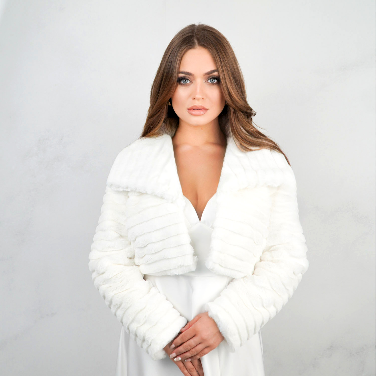 Elegancka kurtka ślubna i bolerko na wesele – sztuczne futerko
