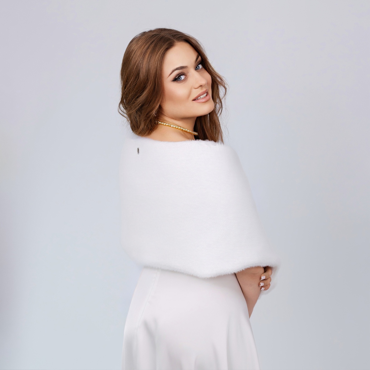 MONACO - Szal Ślubny Bialy Okrycie Narzutka Na Krzyż BRIDAL STOLE