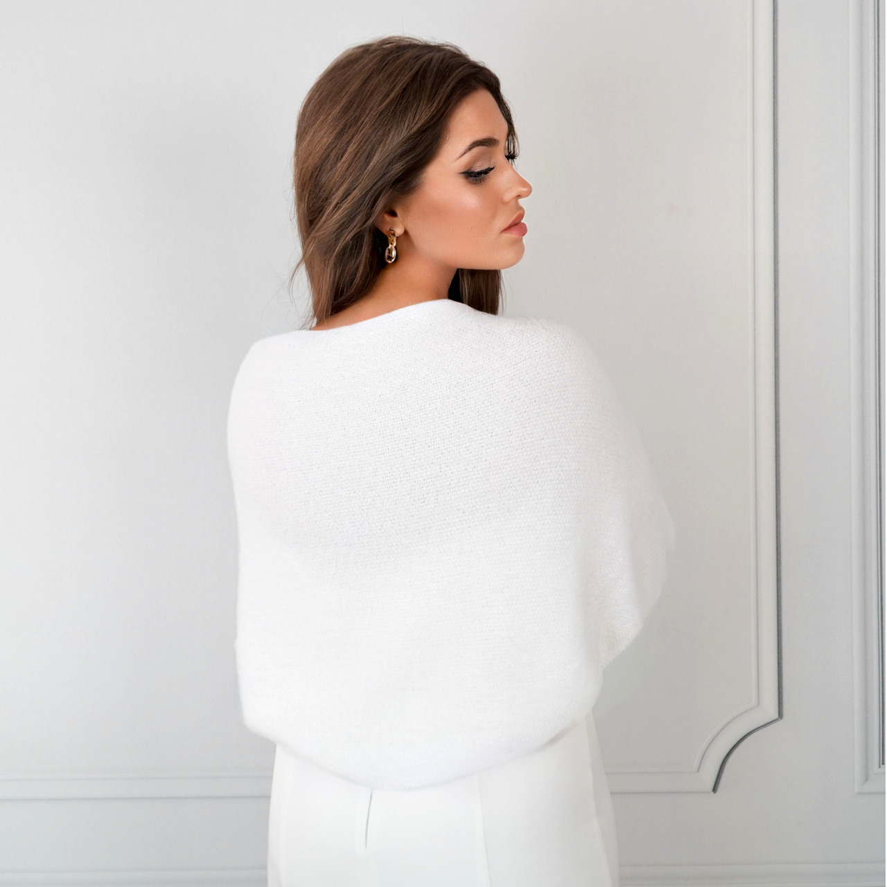 Delikatny i stylowy sweterek ślubny w kolorze białym to idealne uzupełnienie każdej stylizacji ślubnej. Zaprojektowany z myślą o komforcie i elegancji, sprawdzi się jako subtelne okrycie na ramiona podczas chłodniejszych chwil – zarówno w trakcie ceremonii, jak i przyjęcia weselnego.